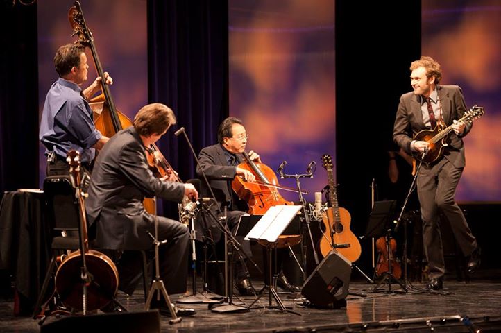 As if heading into a recording studio and rolling tape on this chance-based experiment wasn’t dangerous enough, Yo-Ya Ma, Chris Thile, Edgar Meyer, and Stuart Duncan have taken the show on the road and are doing it live. They’ll be at the Hollywood Bowl Sunday night.