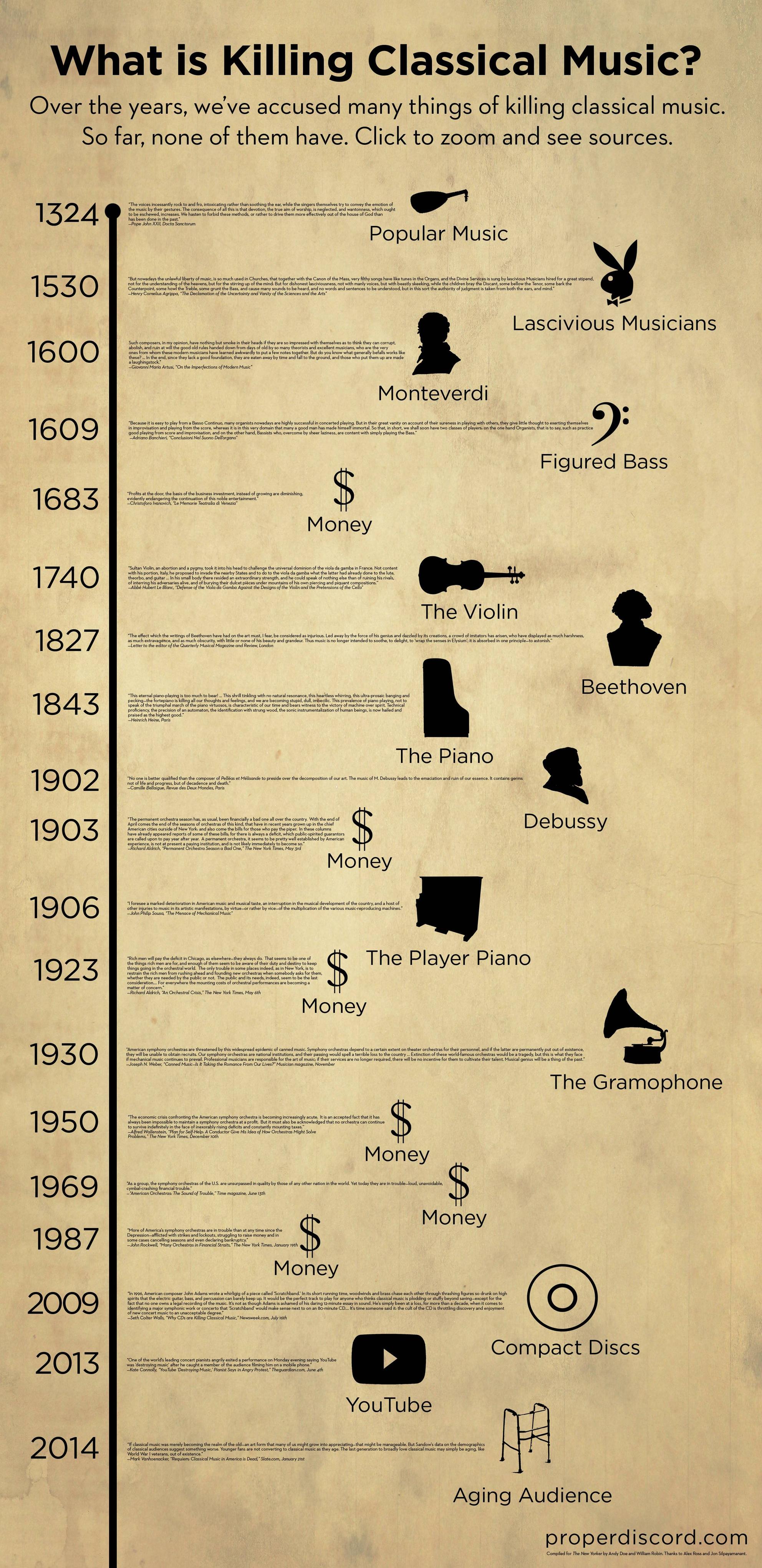 5. Some guy on Slate tried to say that classical music was dead and classical music responded in spectacular fashion. The best smack-down was this infographic from Proper Discord. (And, no, I’m not linking to that stupid Slate article because I don’t want to help increase its pageviews.)