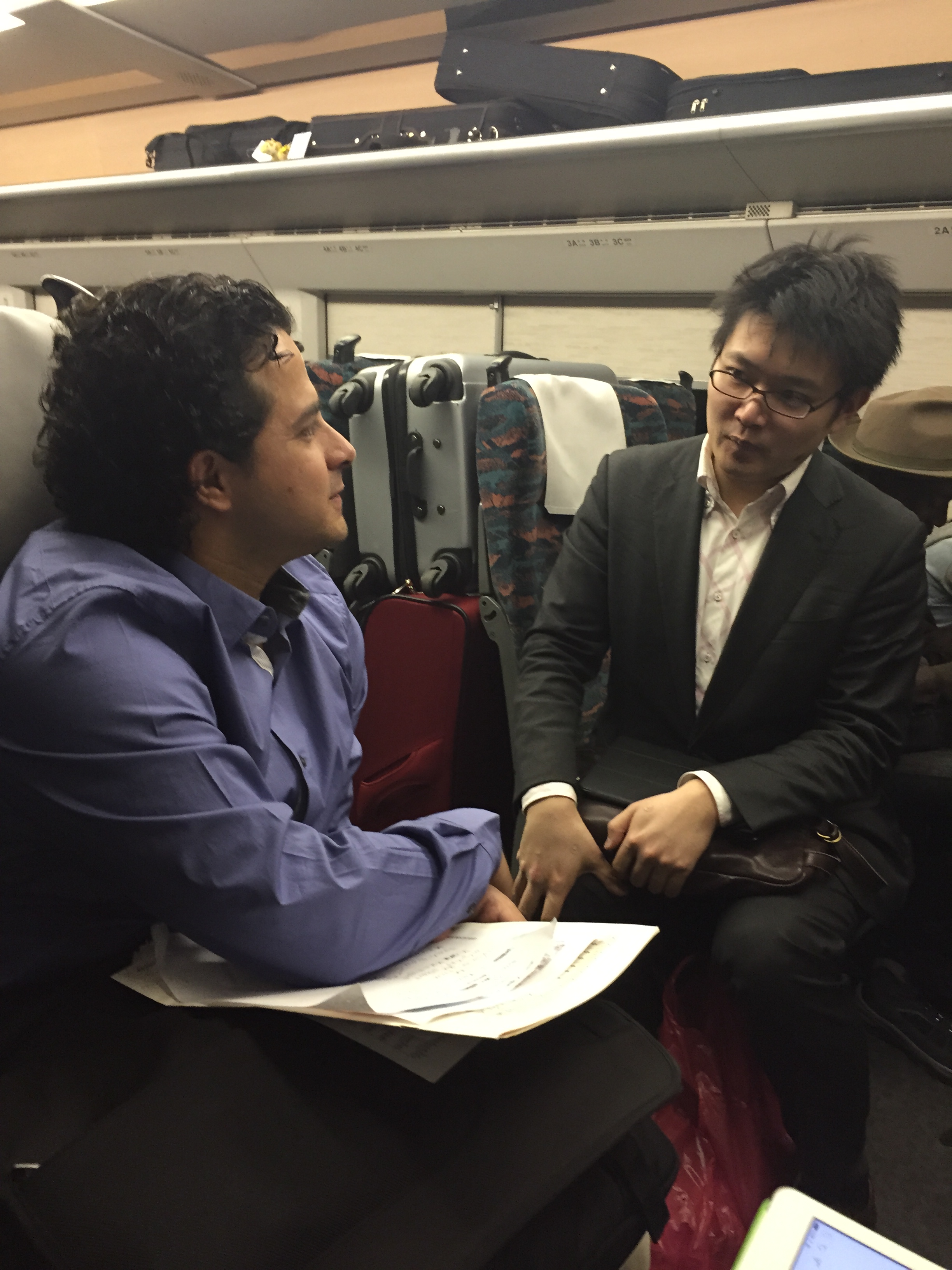 In the seat next to him, YOLA conductor Juan Felipe Molano practiced his rehearsal Japanese vocabulary in preparation for his work with El Sistema Japan and YOLA musicians later that day.