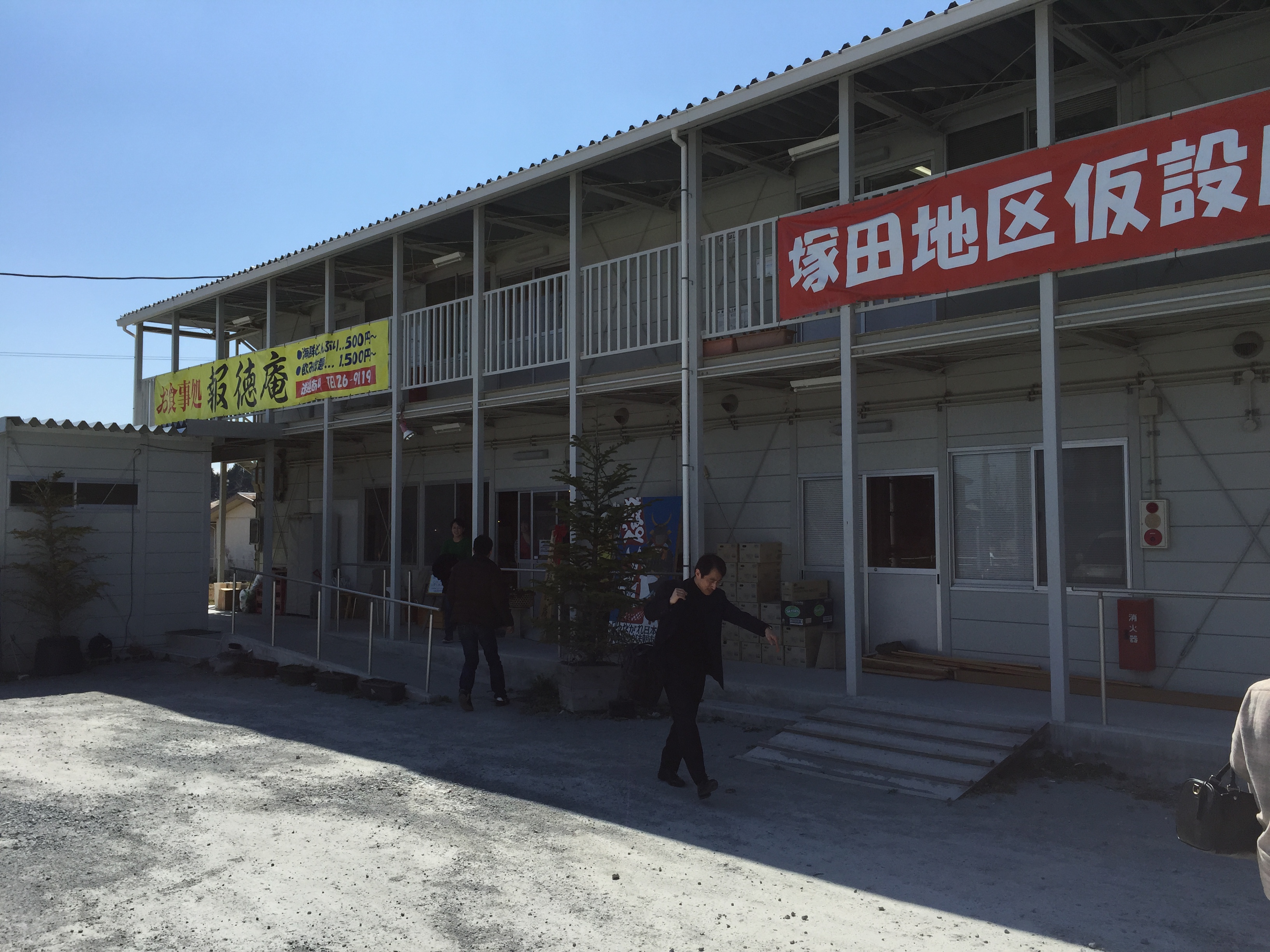 This was our reading material on our twisty bus ride over the mountain from Fukushima to the city of Soma, just inland from the Pacific Coast. The town of 35-thousand residents is well outside the 20 kilometer exclusion zone of the Fukushima Daiichi Nuclear Power Station, but is still very much in the rebuilding phase. For example, lunch came at a restaurant that was housed in one of hundreds of temporary structures that make up a large portion of the town.